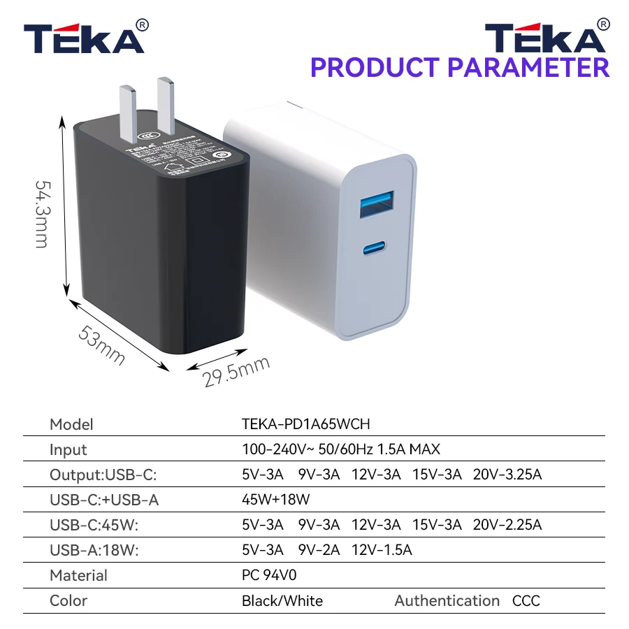 Pd 65w gallium nitride a + c fast charging charger